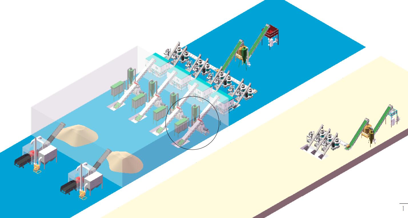 破碎工段—細粉工段—烘干工段—制粒工段--冷卻工段—包裝工段—除塵工段(需求不同選擇的機器也是不同的)。